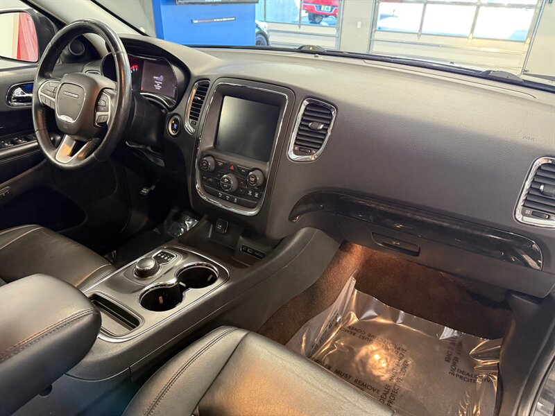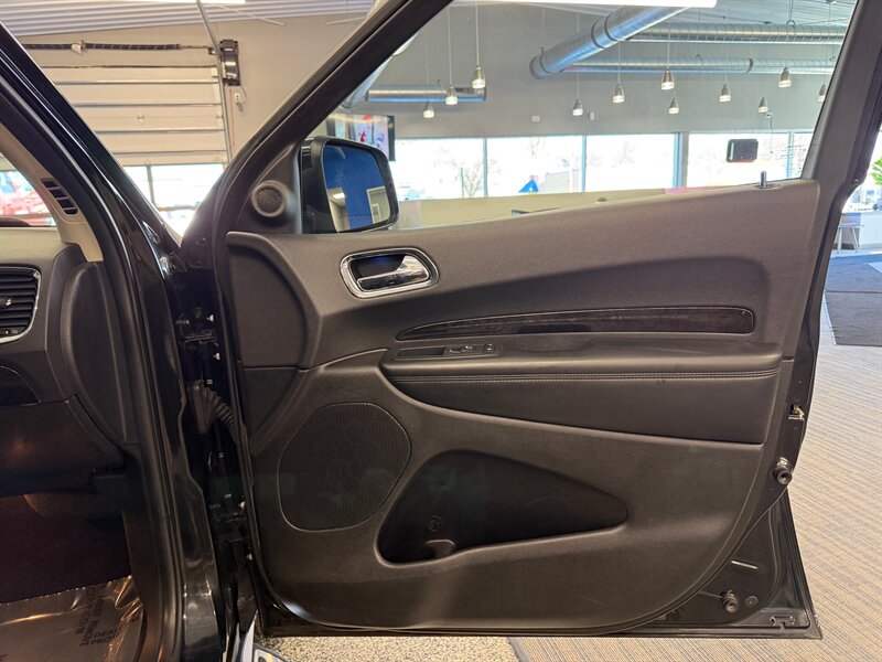 Finished in Brilliant Black Crystal Pearl Coat with a black interior, this Durango comes well equipped with premium features designed for comfort and convenience whether you're commuting or traveling with family.